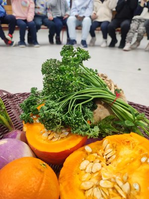 - Clôture de l’atelier en musique avec la comptine « La ronde des légumes »
