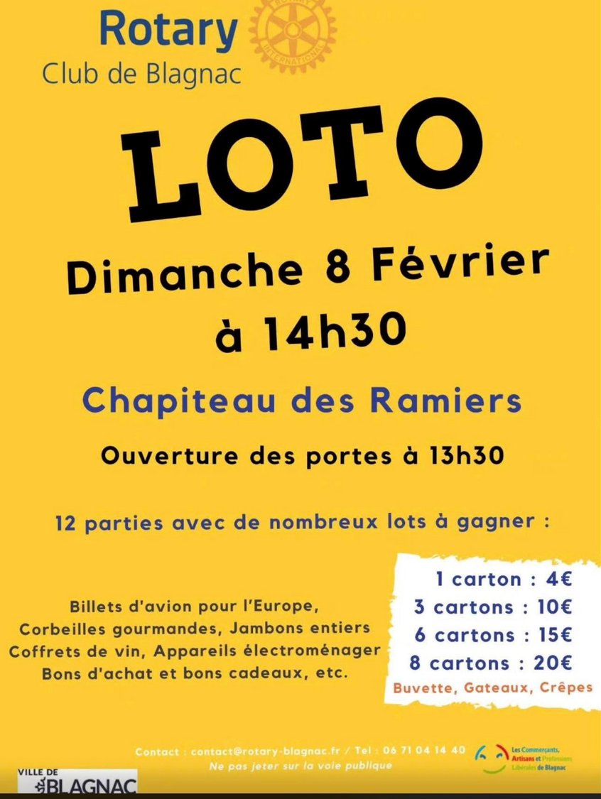 Le Rotary Club de Blagnac organise un grand loto le dimanche 8 février au Chapiteau des Ramiers. Une après-midi conviviale et solidaire, avec de nombreux lots à gagner.